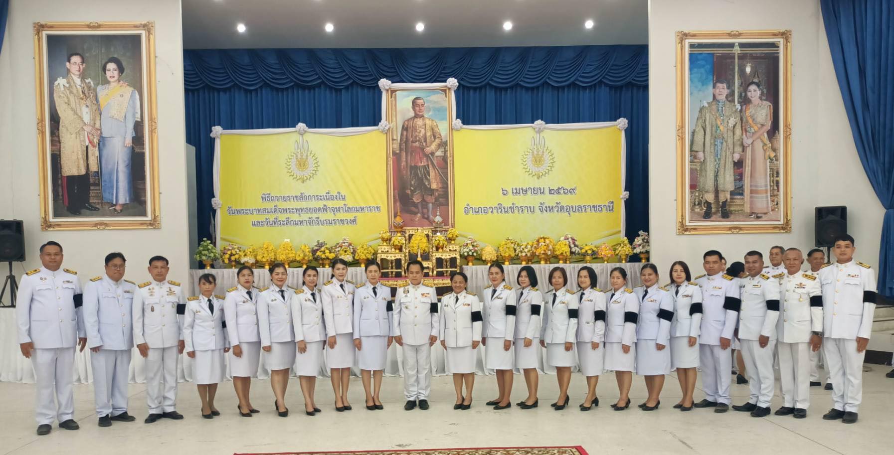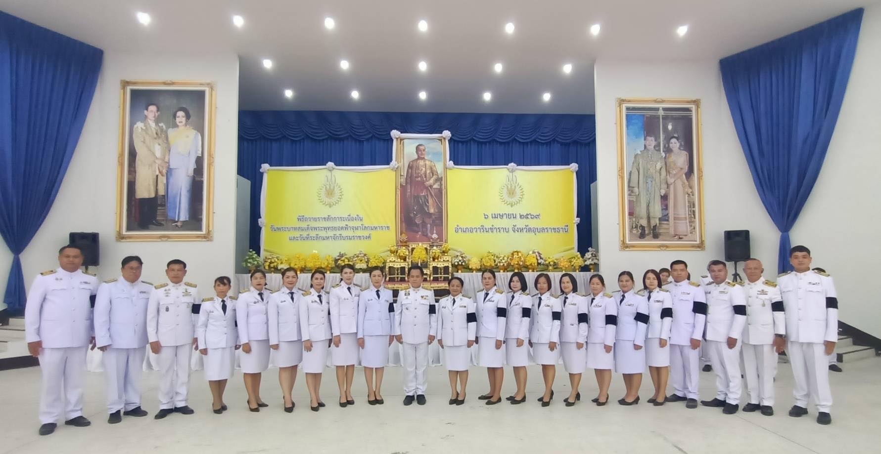 วันจันทร์, 06 เมษายน 2569 10:46วันที่ 6 เมษายน 2569 เทศบาลตำบลโนนผึ้ง นำโดย นางสาวนริศรา ไชยพัฒน์ ปลัดเทศบาล พร้อมด้วย หัวหน้าส่วนราชการ พนักงานเทศบาล เข้าร่วมพิธีถวายราชสักการะเนื่องใน “วันพระบาทสมเด็จพระพุทธยอดฟ้าจุฬาโลกมหาราช และวันที่ระลึกมหาจักรีบรมราชวงศ์ ” เพื่อเป็นการเฉลิมพระเกียรติพระบาทสมเด็จพระพุทธยอดฟ้าจุฬาโลกมหาราช และพระมหากษัตริย์ทุกพระองค์แห่งราชวงศ์จักรีที่ได้เถลิงถวัลยราชสมบัติผ่านมาจนถึงปัจจุบัน ณ ที่หอประชุมอำเภอวารินชำราบ อำเภอวารินชำราบ จังหวัดอุบลราชธานี