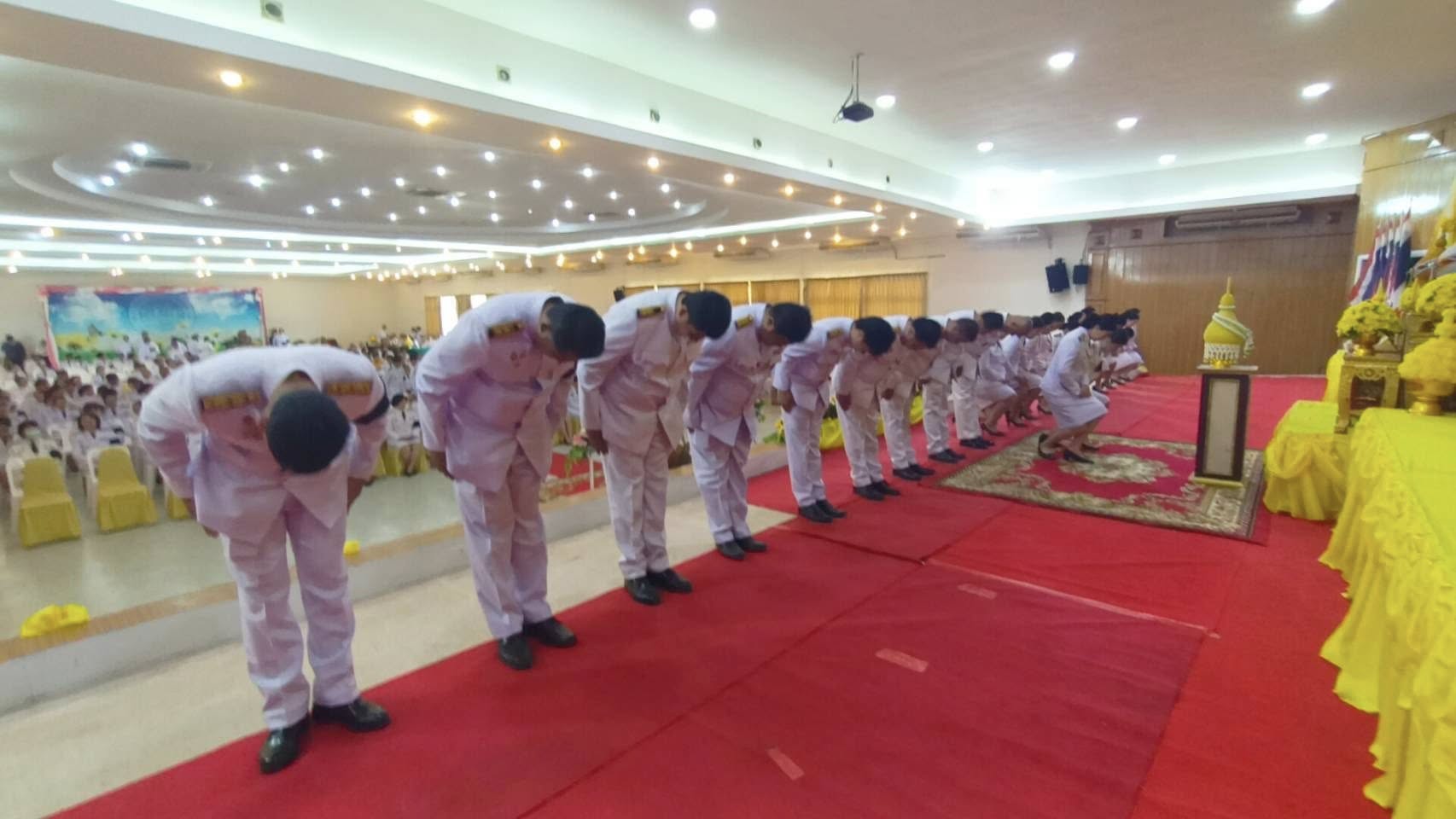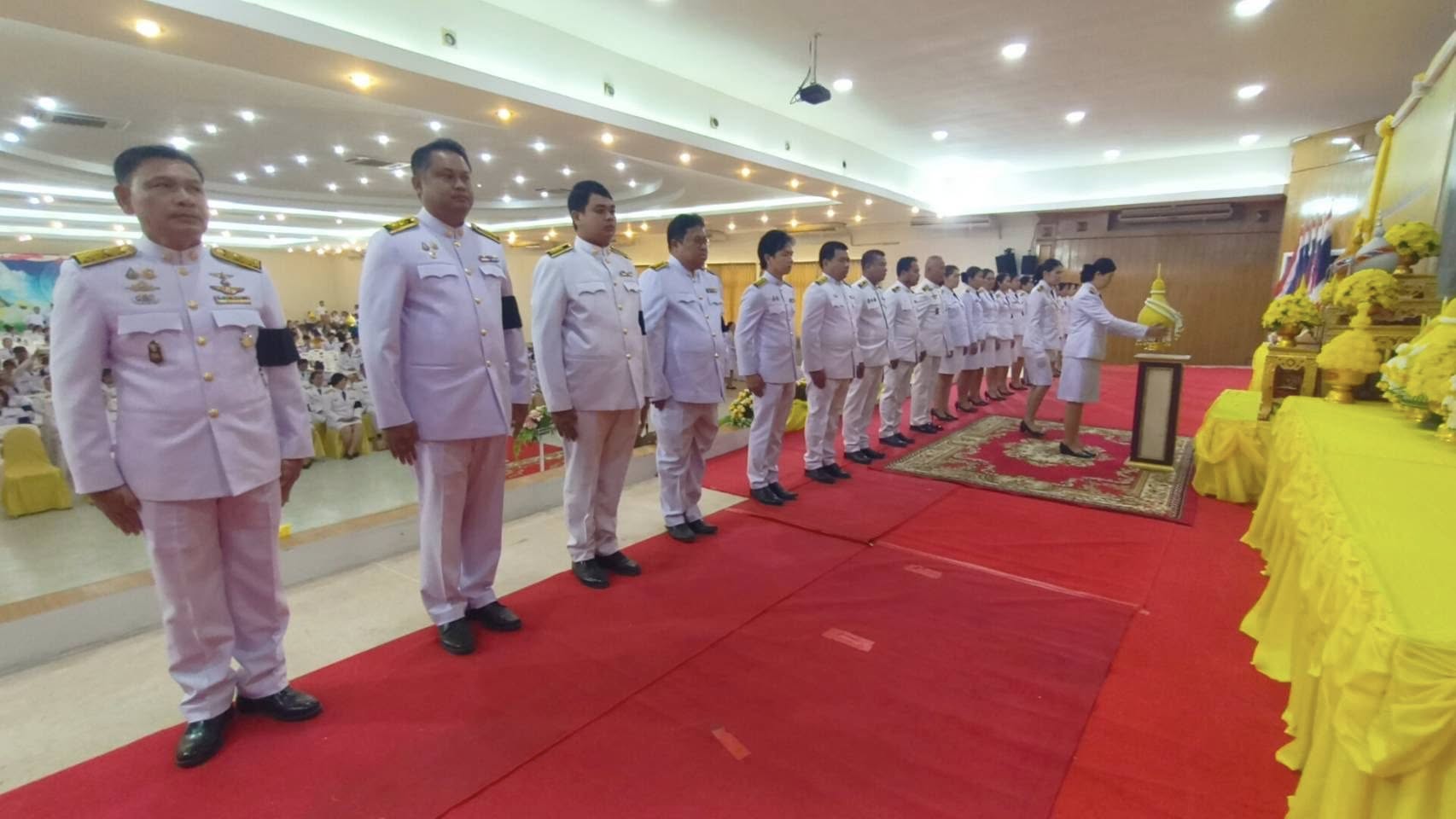 วันศุกร์, 05 ธันวาคม 2568 12:01วันที่ 5 ธันวาคม 2568 เทศบาลตำบลโนนผึั้ง ร่วมพิธีวางพานพุ่มดอกไม้ถวายราชสักการะ เนื่องในวันคล้ายวันพระบรมราชสมภพพระบาทสมเด็จพระบรมชนกาธิเบศร มหาภูมิพลอดุลยเดชมหาราช บรมนาถบพิตร วันชาติ และวันพ่อแห่งชาติ ณ หอประชุมโรงเรียนเทศบาลแสนสุข โดยมี ทหาร ตำรวจ หัวหน้าส่วนราชการ องค์กรปกครองส่วนท้องถิ่น และประชาชนชาวอำเภอวารินชำราบ ร่วมพิธี โดย นายอุดมศักดิ์ นวลศิริ นายอำเภอวารินชำราบ ประธานในพิธีฯ